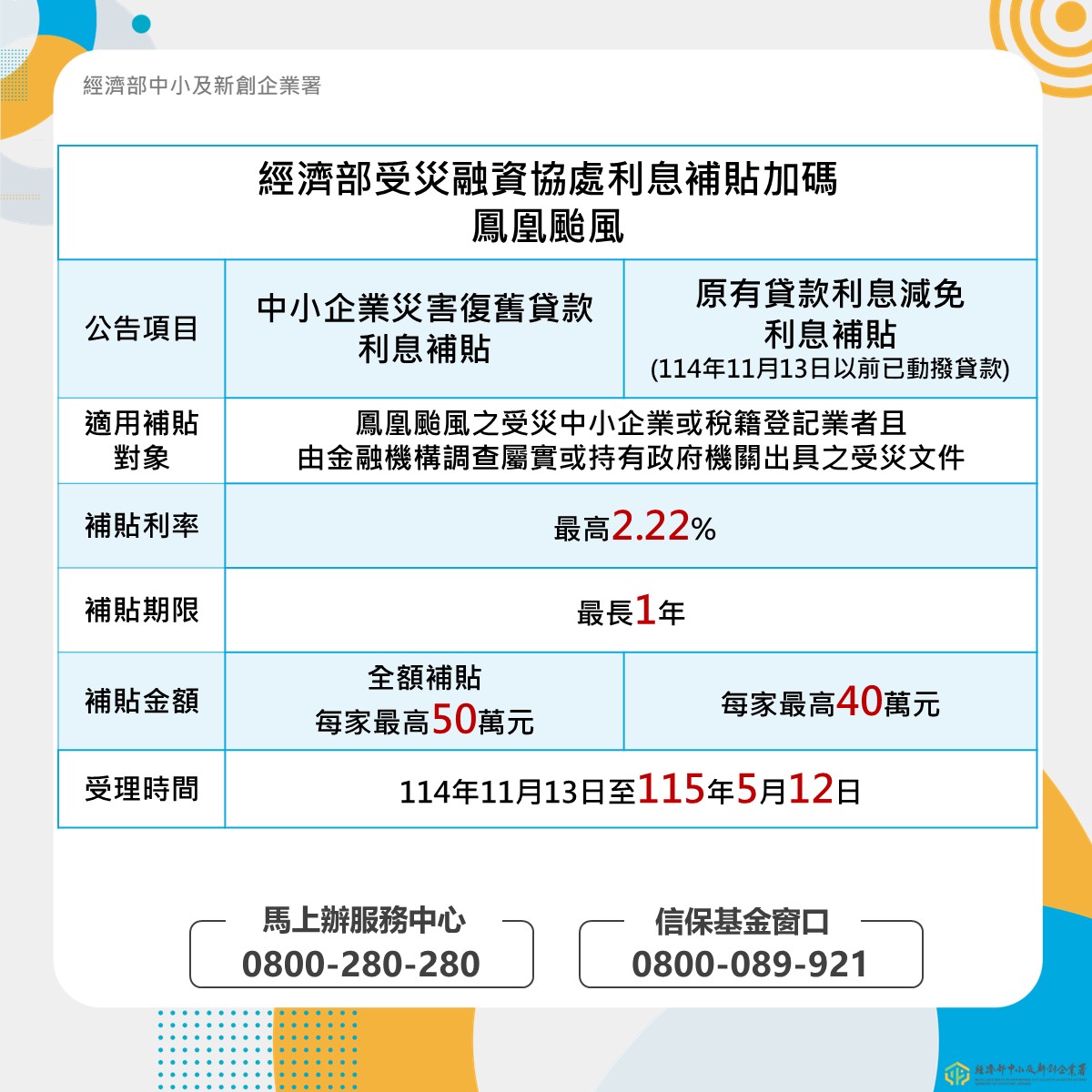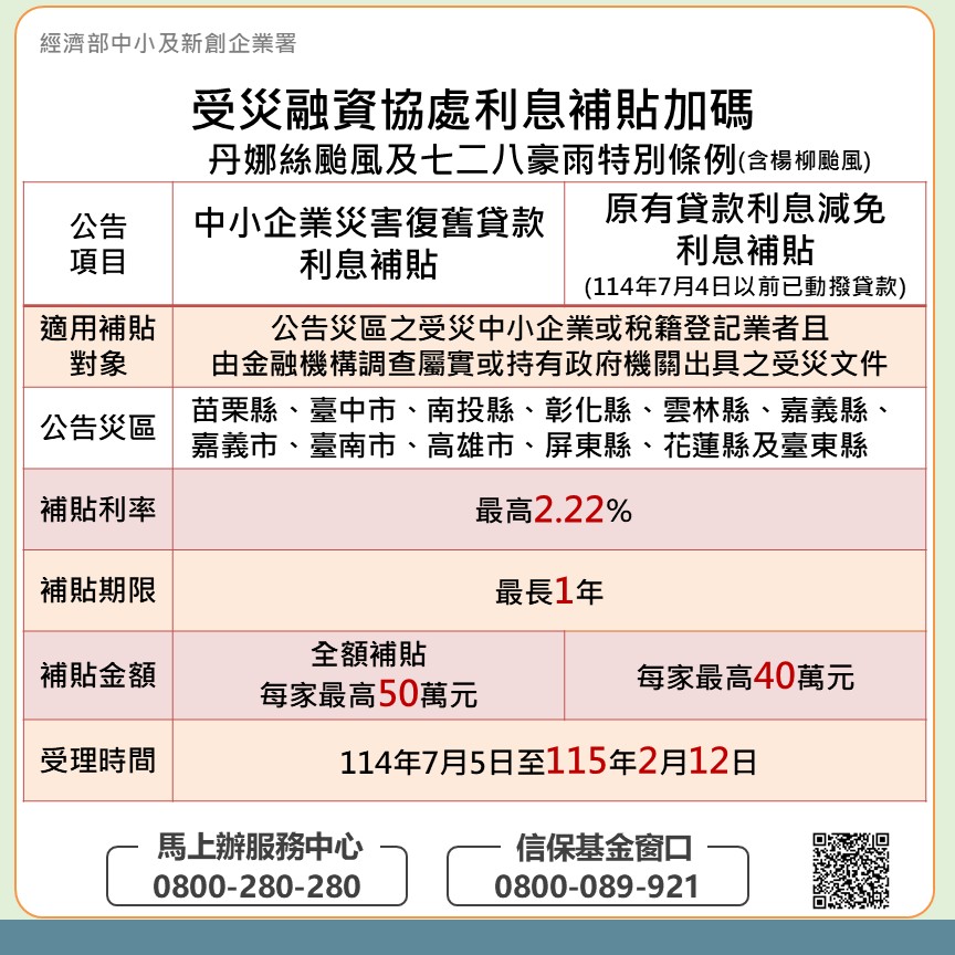 鳳凰颱風利息補貼加碼要點公告事項1141126 |