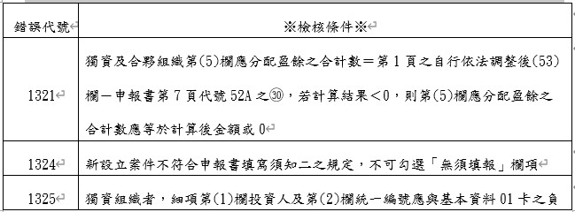 - 項次1如經稽徵機關核定短漏報或主管機關查核通知調整之本期稅後淨利,應於「本期稅後淨利(1~1或1~2)」或「其他空白欄項3~5」揭露調整申報(參營利事業所得稅核定通知書下方#421欄位填載),並請於實務可行(例如尚未關帳)時,補估列相應之所得稅費用及本期所得稅負債