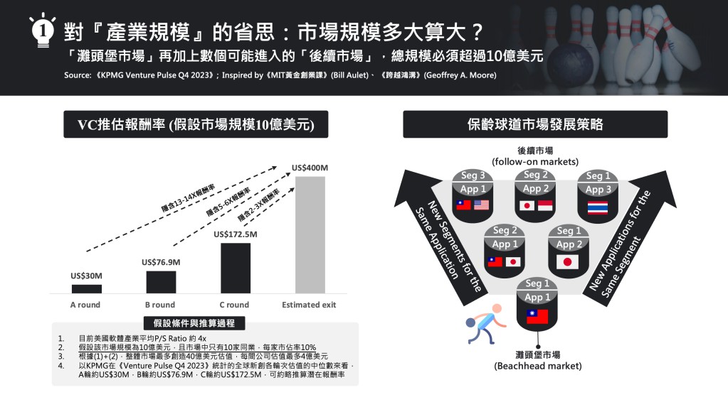 整體看來,「灘頭堡市場」+幾個可能進入的的「後續市場」的總規模超過10億美元,對VC來說才是一個夠大的市場。
