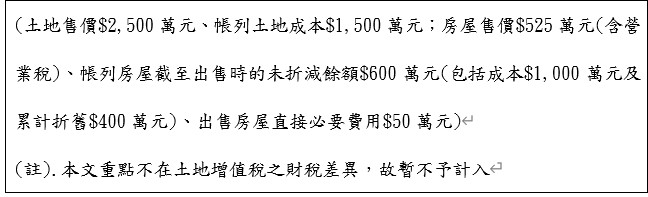 如上單純的案例底下,我們分別來看看,就房地交易損益採總額或淨額申報,將產生什麼樣的差異結果