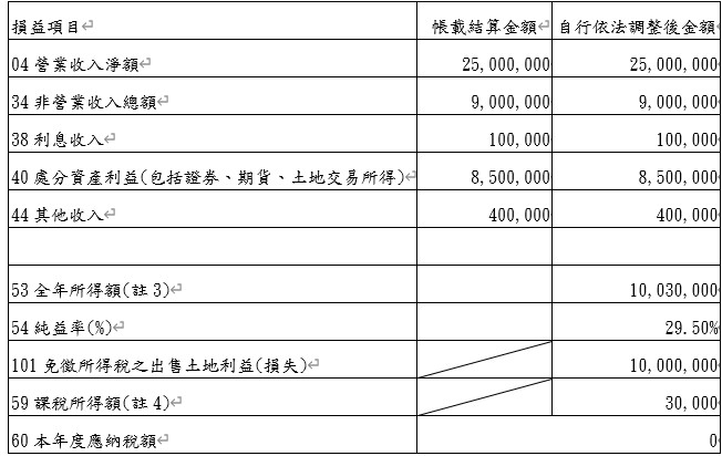 以下列示申報書P1損益及稅額計算表欄位應如何填報