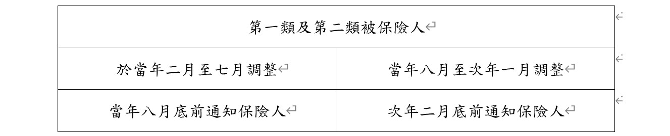 (註2).本條係就第一類及第二類被保險人投保金額之調整而為規定,至有關第三類被保險人之投保金額調整,則於同法第22條規範,惟就第四類至第六類被保險人而言,並無投保金額調整之問題
