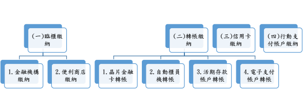 ※網路繳稅服務網站:提供納稅義務人以晶片金融卡、活期(儲蓄)存款帳戶、信用卡、電子支付帳戶線上繳納稅款之服務。(https://paytax.nat.gov.tw/Index.aspx)