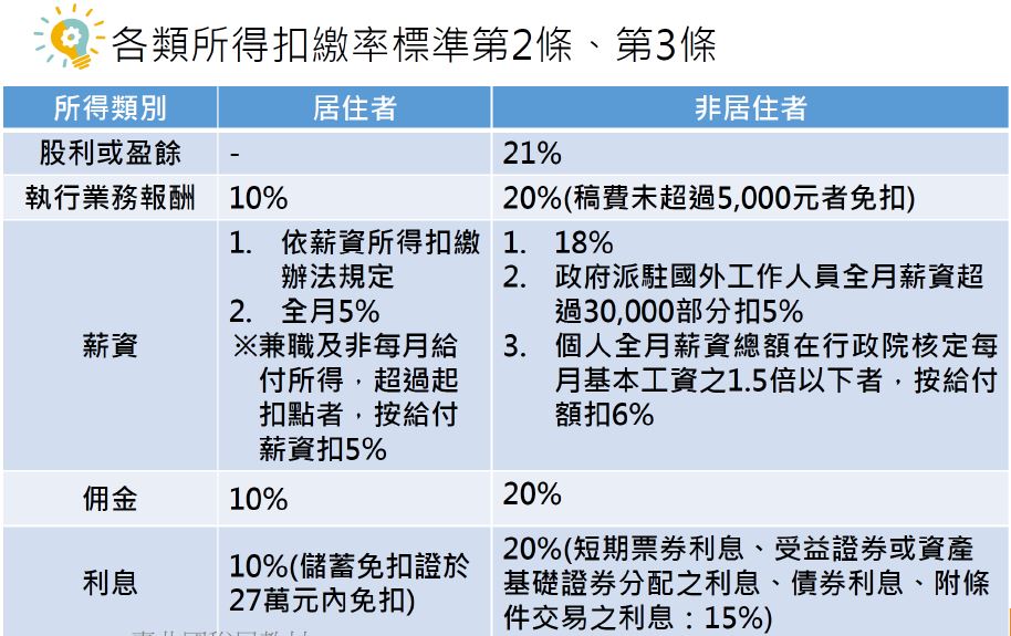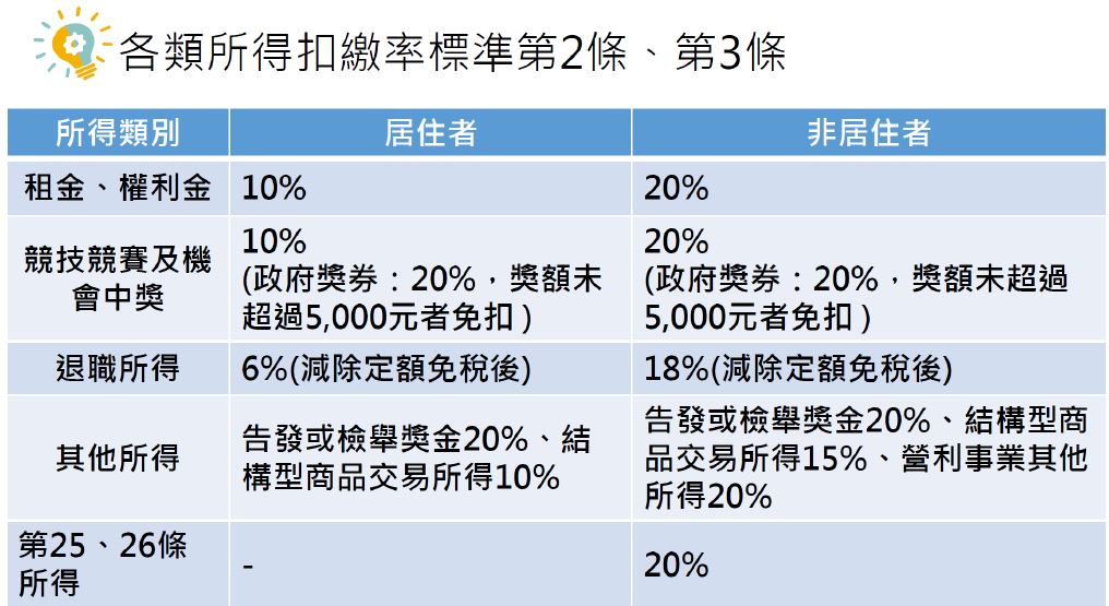請參閱下圖各所得類別扣繳率
