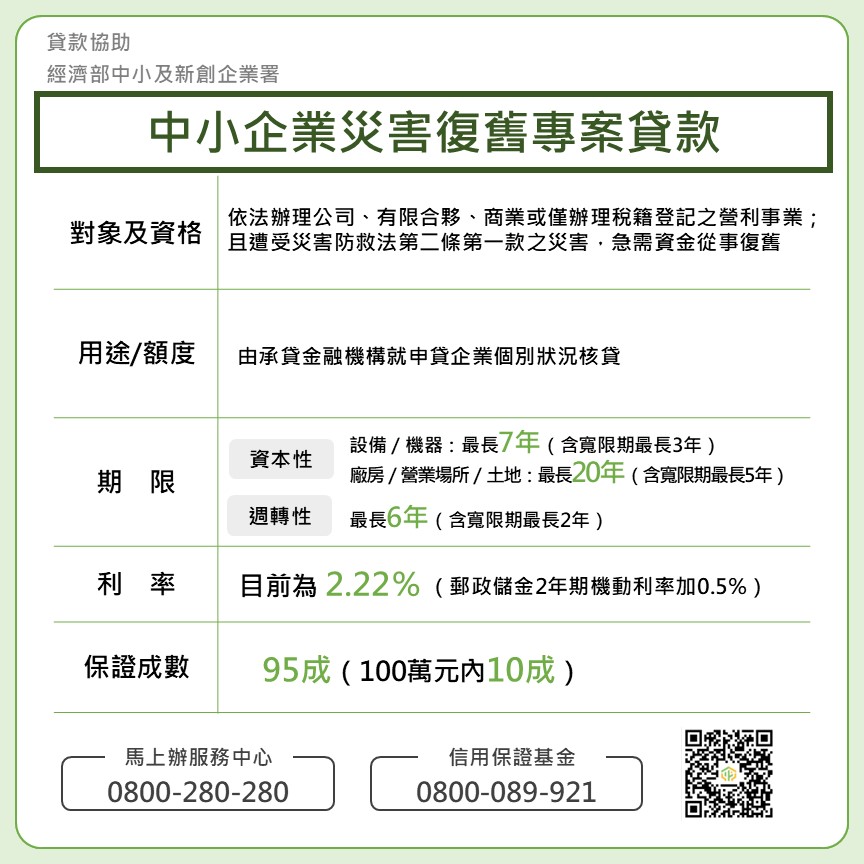 中小企業災害復舊專案貸款
