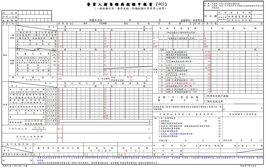 | 近一年或最近一期營業稅申報書(401、 403或 405表) | - | V | V | V |